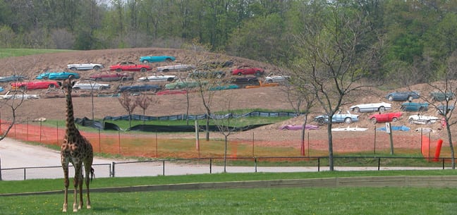 comatthezoo_small Auto Recycling at the Zoo? – Toronto Zoo is featuring a special project from June 29, 2004 to September 30, 2004. Ian Lazarus and Badanna Zack designed the “Serpentine Mounds” as part of the Zooarts projects. Standard Auto Wreckers provided the cars for the environmentally theme display. Click on the thumbnail to see the picture, taken May 13th, 2004 of the almost completed project.